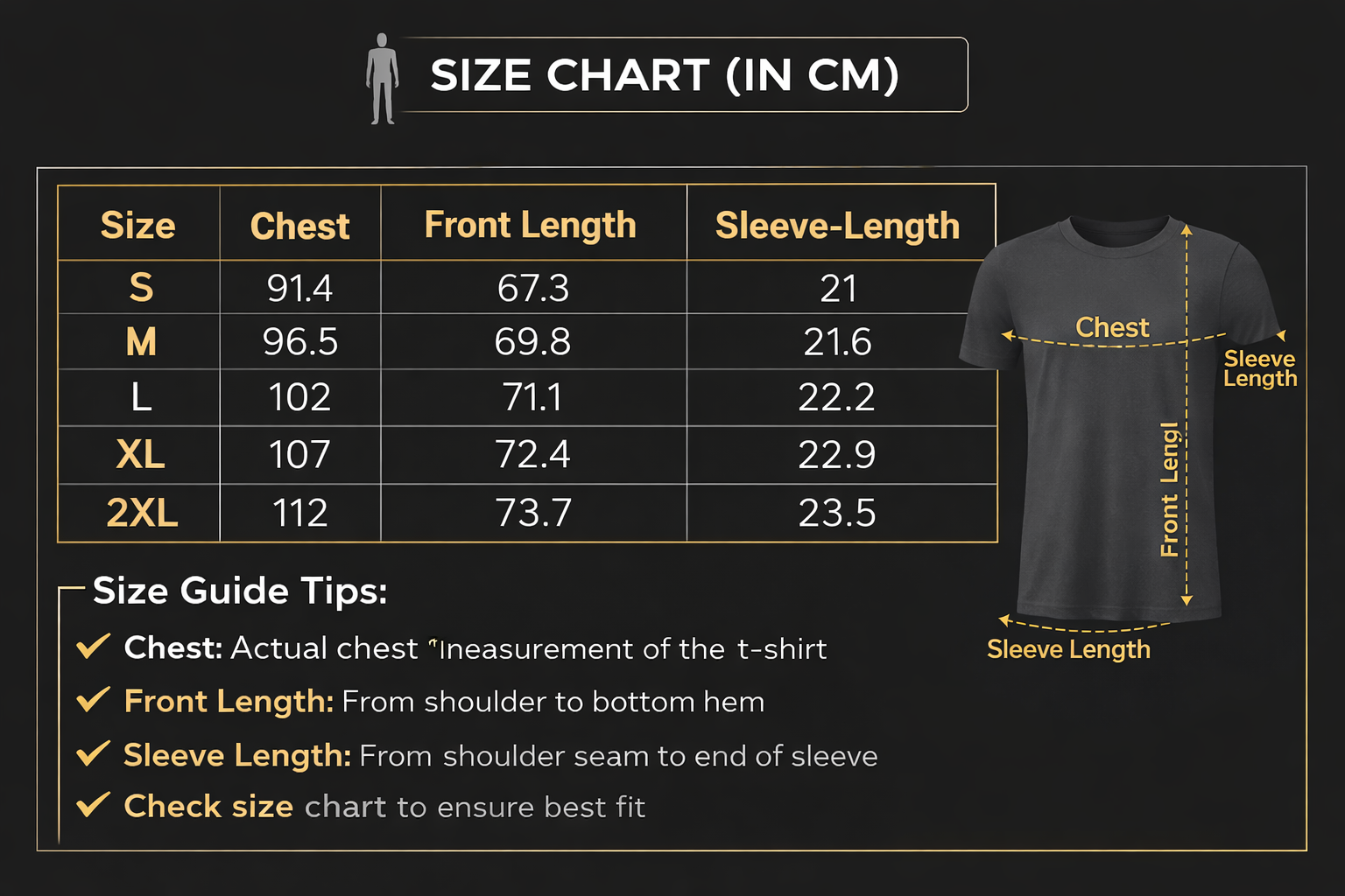 - Shape Retention: Blended fabric that offers a subtle stretch, ensuring the t-shirt moves with you and maintains its tailored fit without sagging.